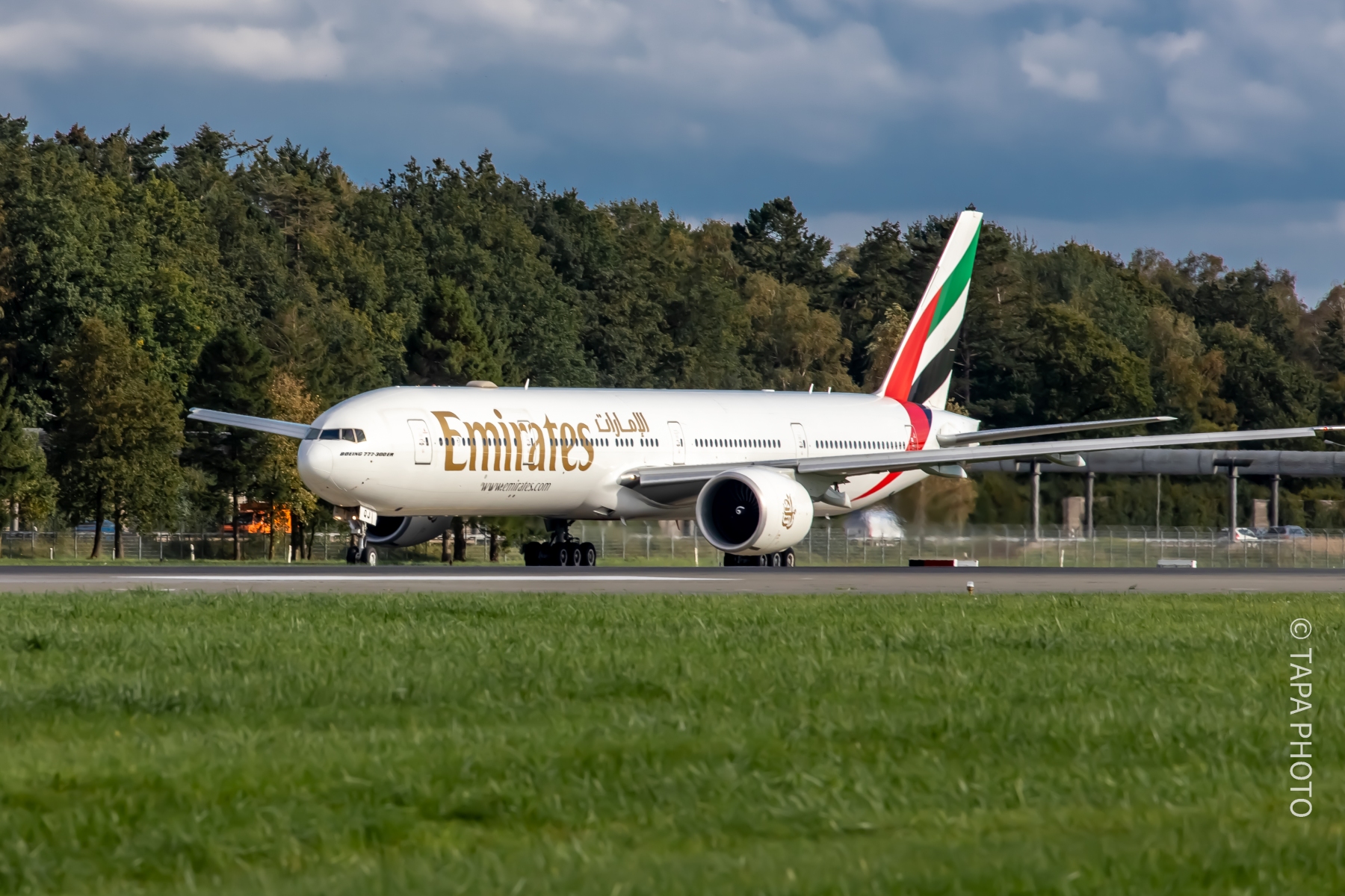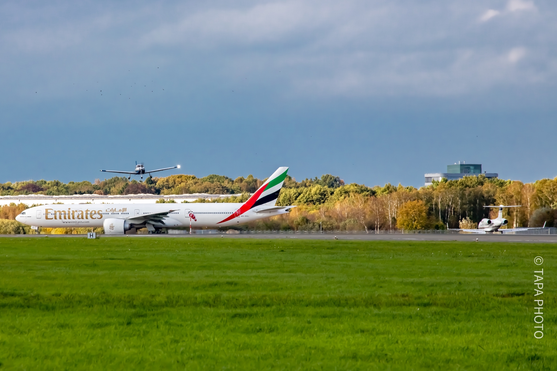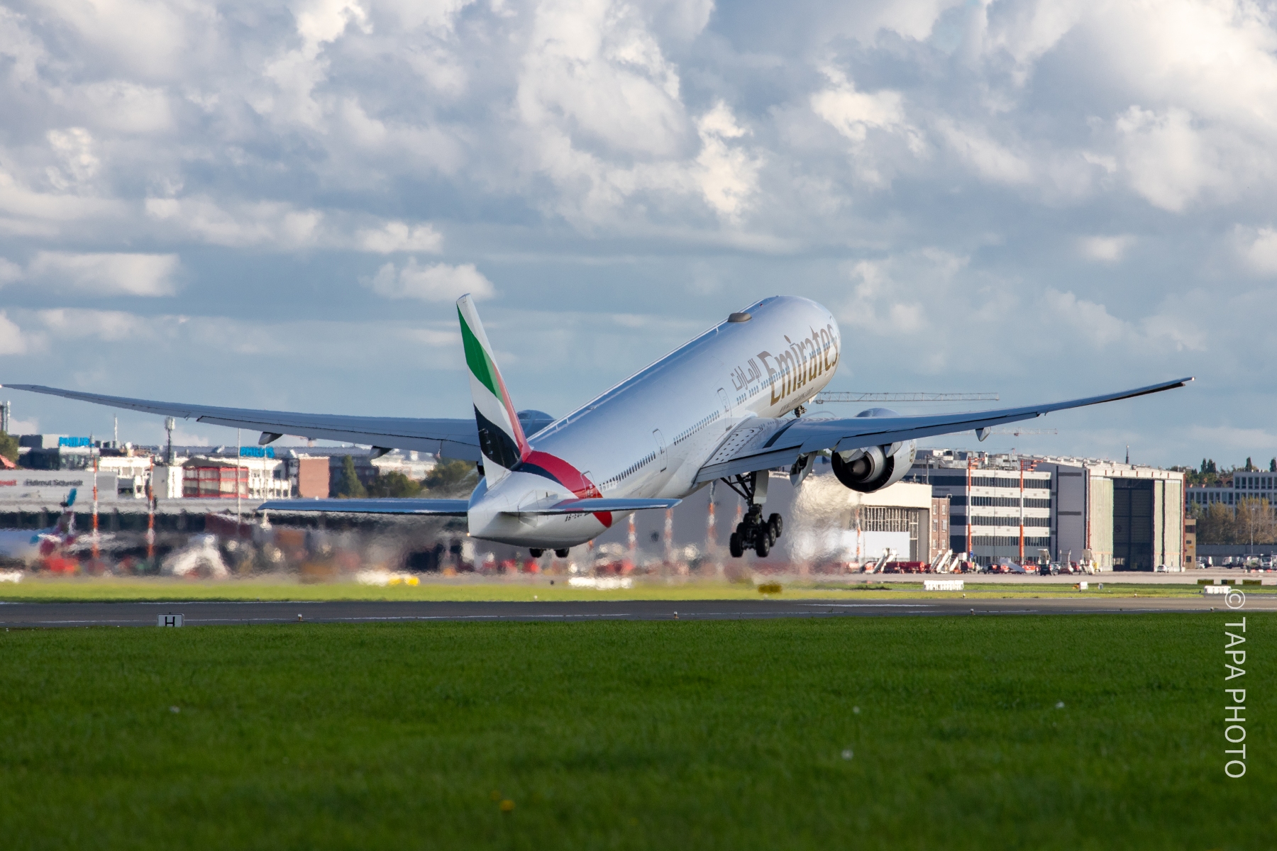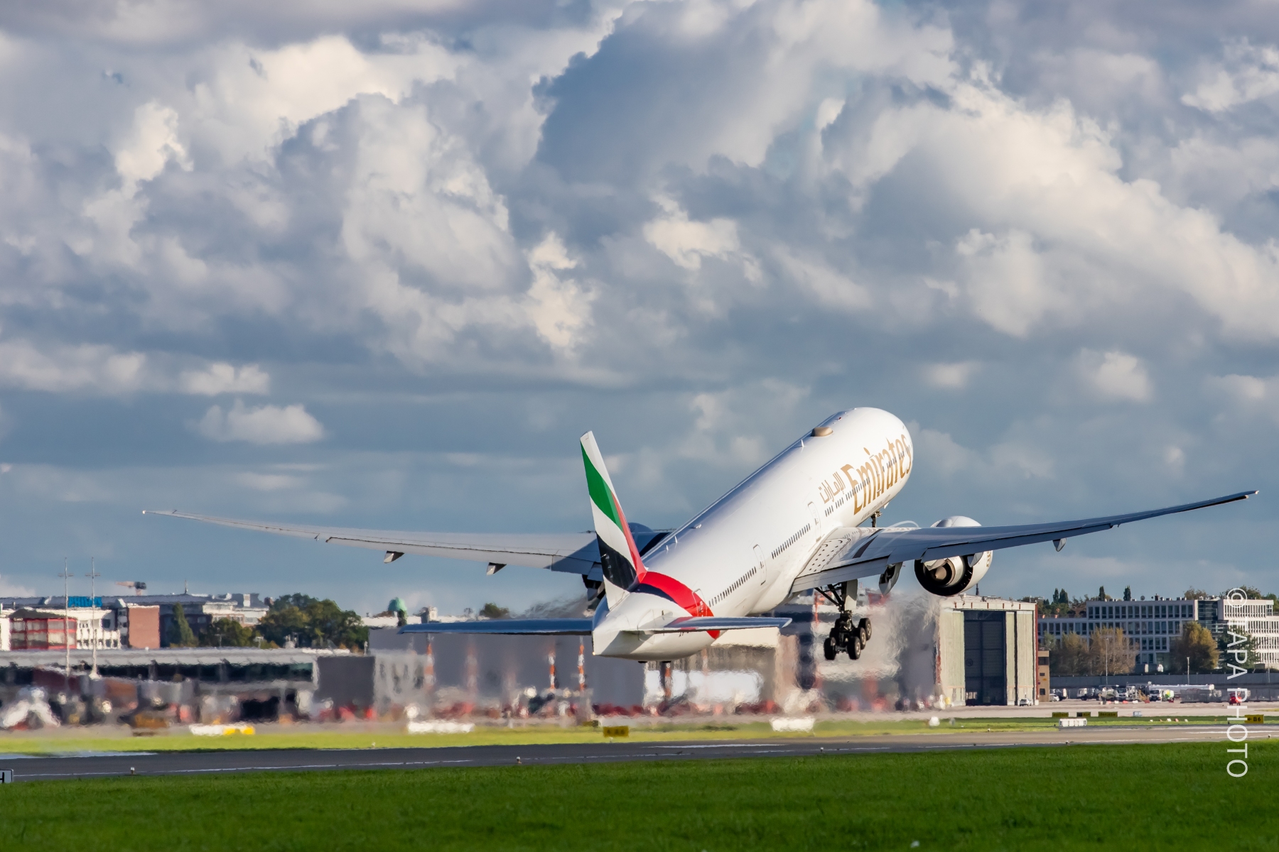 Aus Hamburg nahm 1955 die Lufthansa Ihre Verbindung nach New York auf und auch die legendäre Pan Am, American Airlines, Delta und Northwest Orient bedienten von hier Nordatlantik Routen, allerdings teilweise mit Stopp in Kopenhagen oder London. Lufthansa fliegt seit Ende 1992 keine Langstreckenverbindungen mehr ab Hamburg, dennoch ist (bis zur Covid-19 Krise) Emirates regelmäßig mit den Airbus A380 aus Dubai zu Gast und verlängert diese zum Teil bis New York. Wir konnten hier die Boeing B777-300ER von Emirates beim Start auf dem Runway 15/33 fotografisch einfangen.