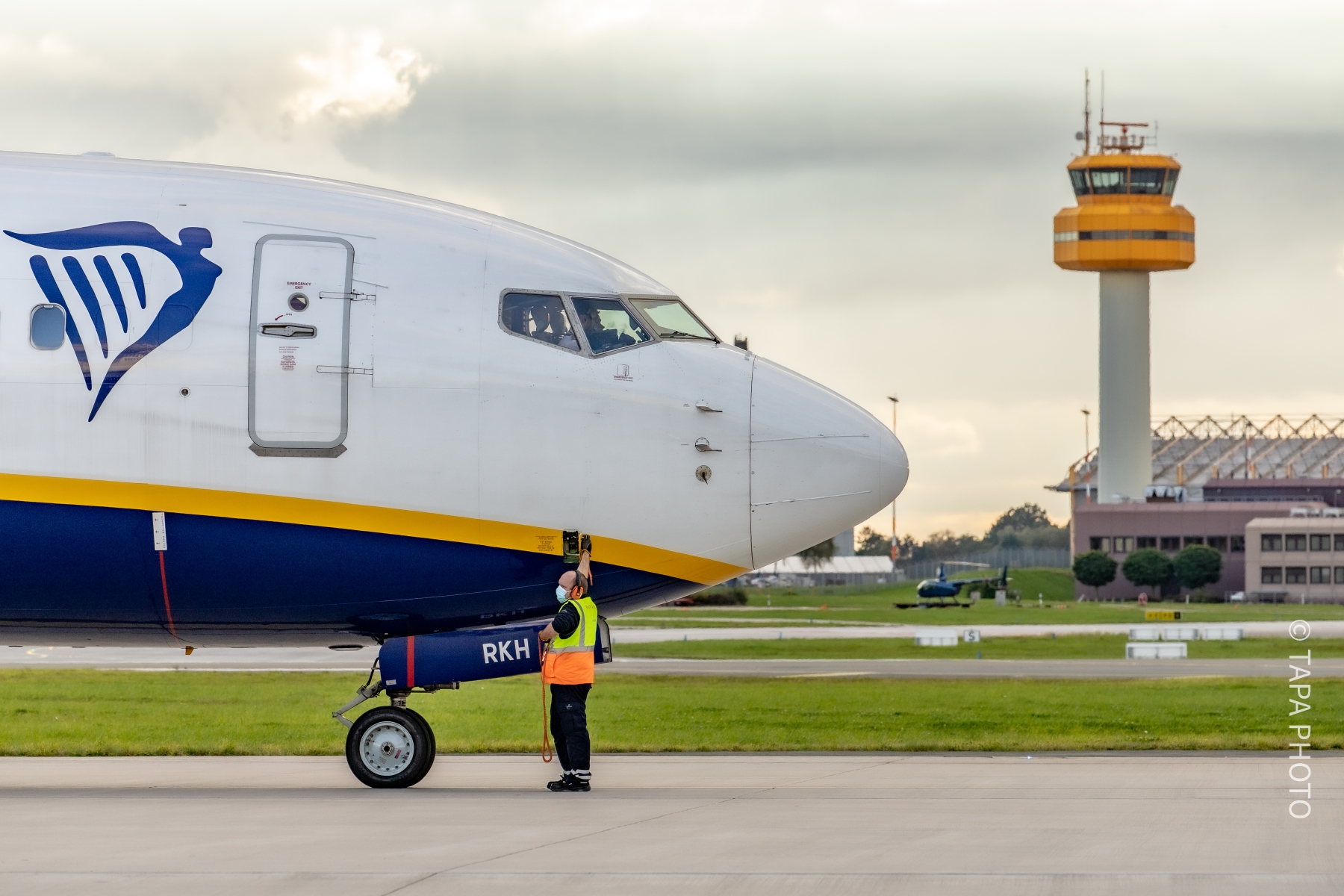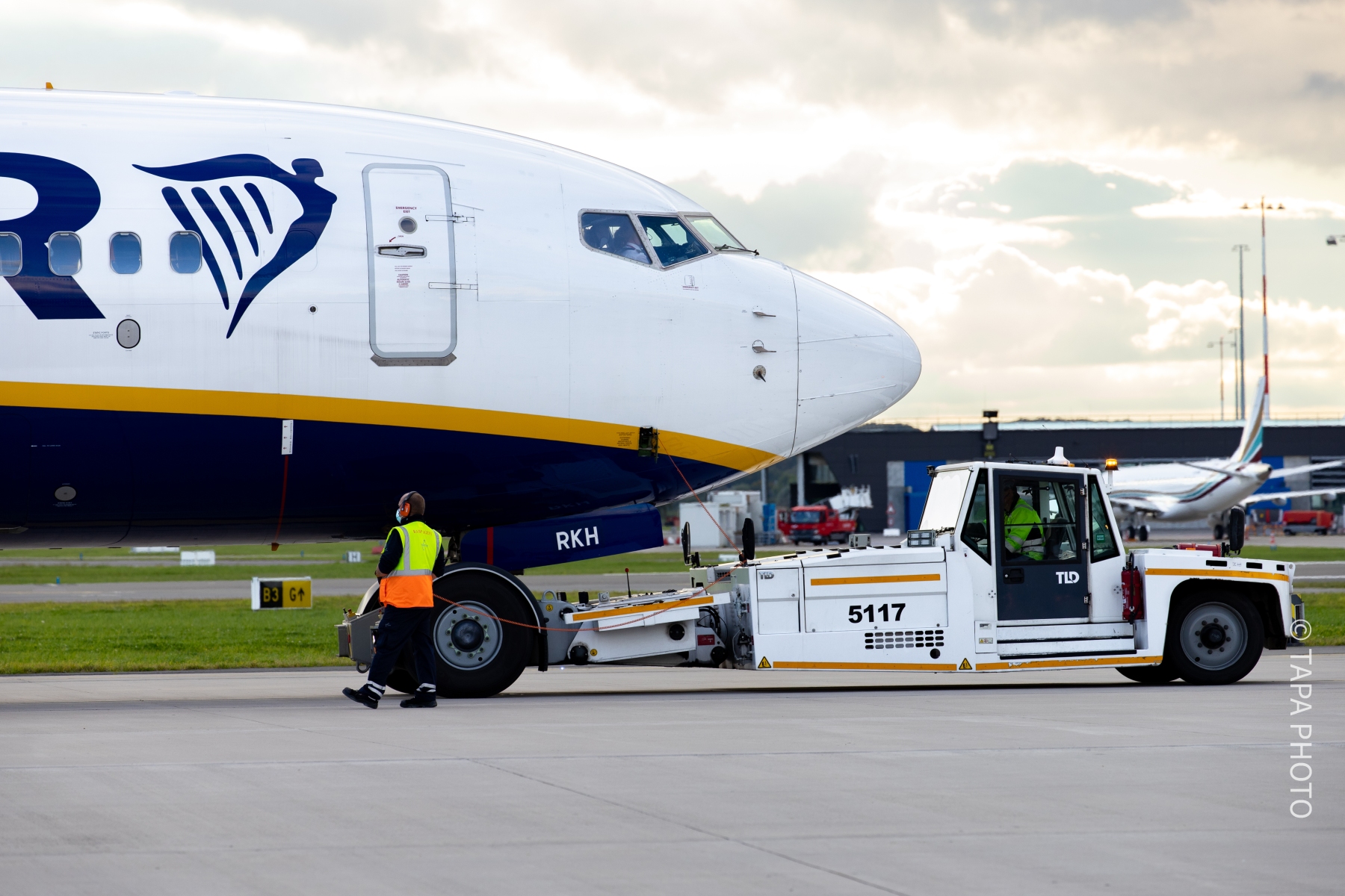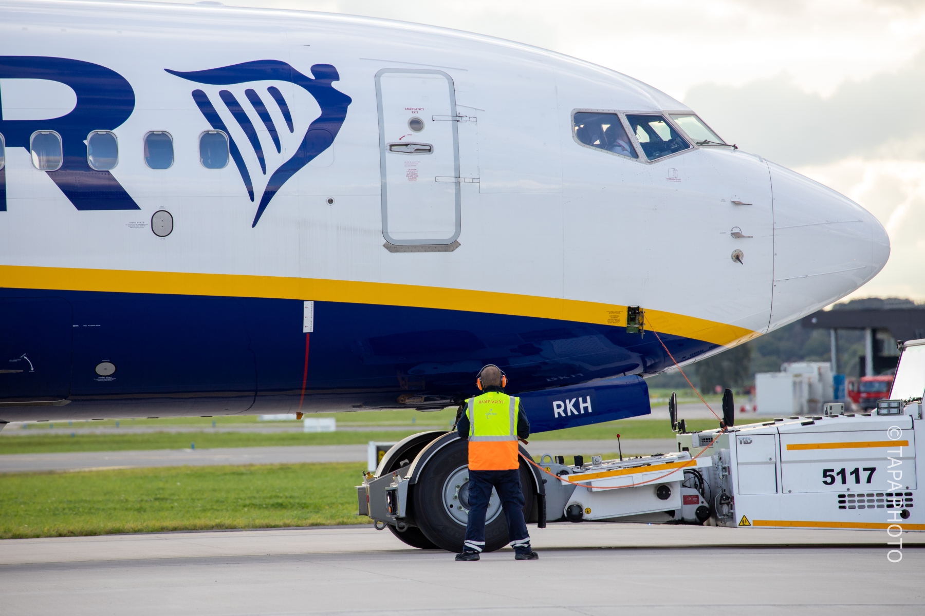 Schließlich kamen wir dann am eigentlichen Vorfeld des Flughafens an und konnten dort sehr interessiert der Abfertigung der Flugzeuge durch das Bodenpersonal und dem Ramp Agent verfolgen. Besonders das Pushback der Ryanair Boeing B737 war sehr beeindruckend und fotografisch herausfordernd.