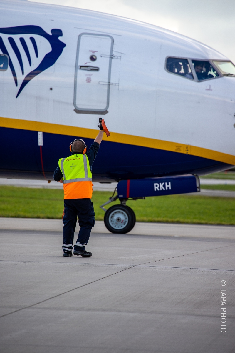 Finally we arrived at the actual apron of the airport and were able to watch with great interest the handling of the aircraft by the ground staff and the ramp agent. Especially the pushback of the Ryanair Boeing B737 was very impressive and photographically challenging.